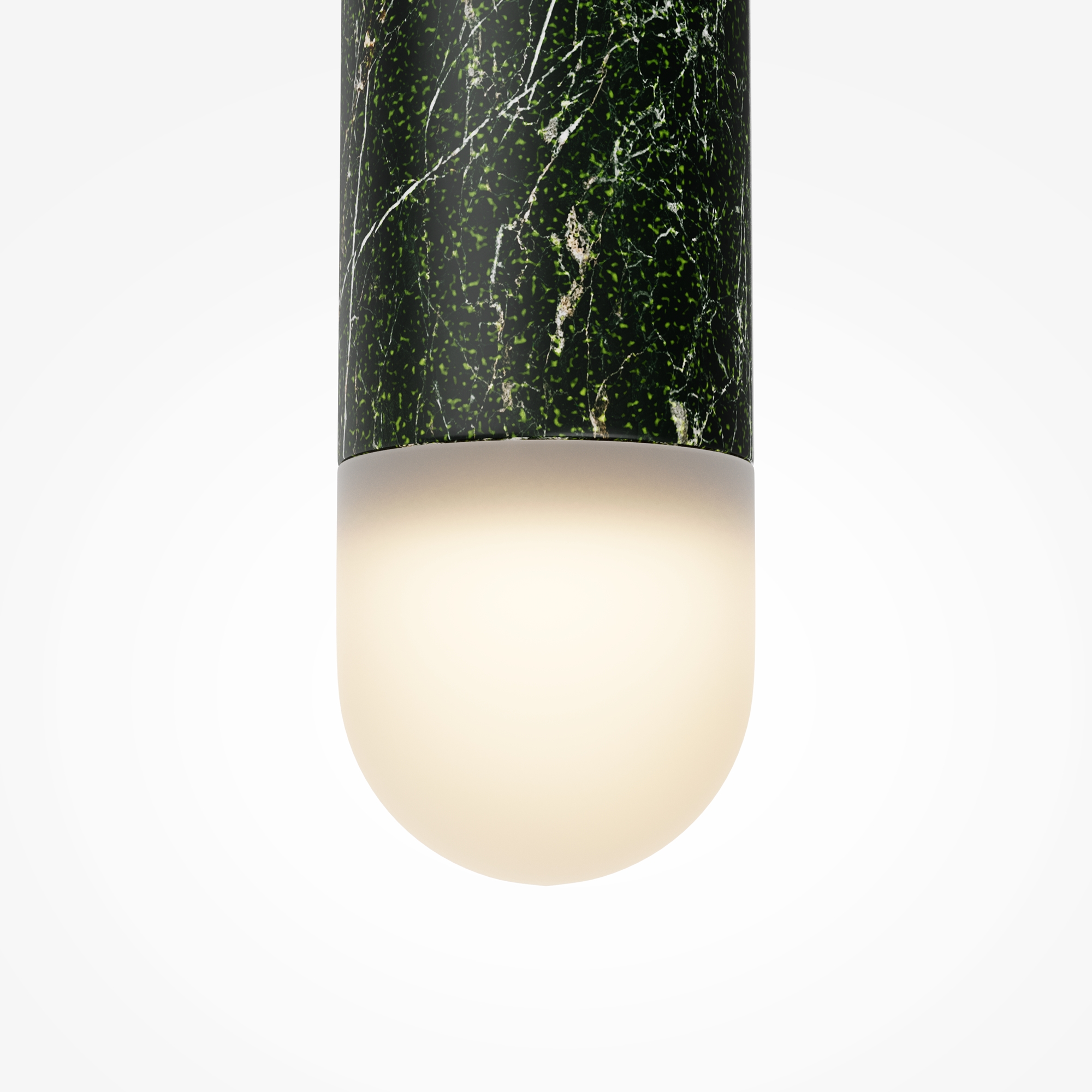 Главный акцент серии — натуральный зелёный мрамор с его неповторимым природным рисунком. Чёрная металлическая арматура создаёт гармоничный контраст. LED-источник с температурой 3000К, скрытый за акриловым рассеивателем, создаёт атмосферную подсветку для деликатного зонирования. В серии представлены подвесы двух форм — конус и вытянутый цилиндр, которые можно использовать как сольные акценты или комбинировать в многоуровневые композиции, меняя длину провода (3000 мм).