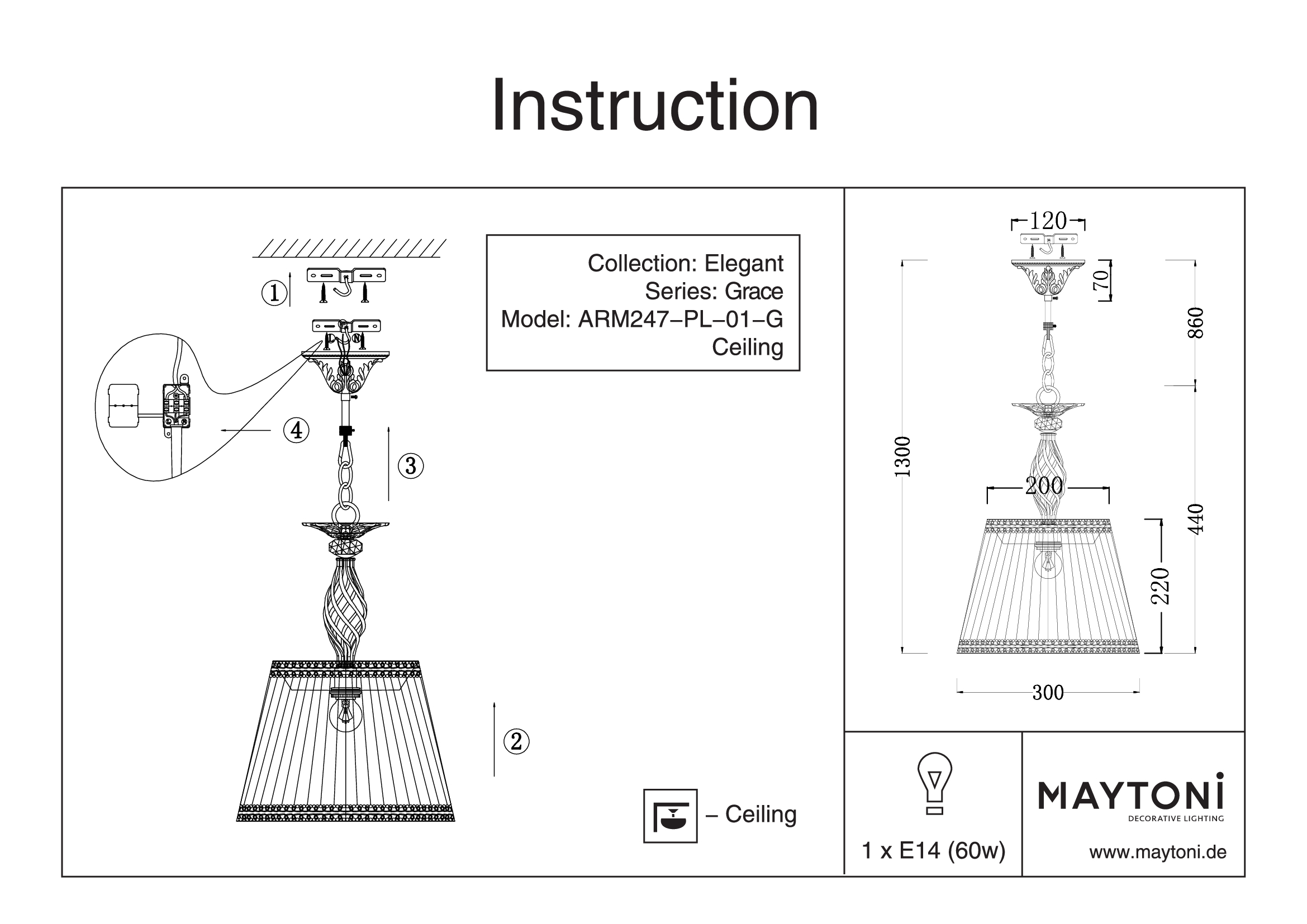 Купить "Подвесной светильник Maytoni Grace ARM247-PL-01-G"
