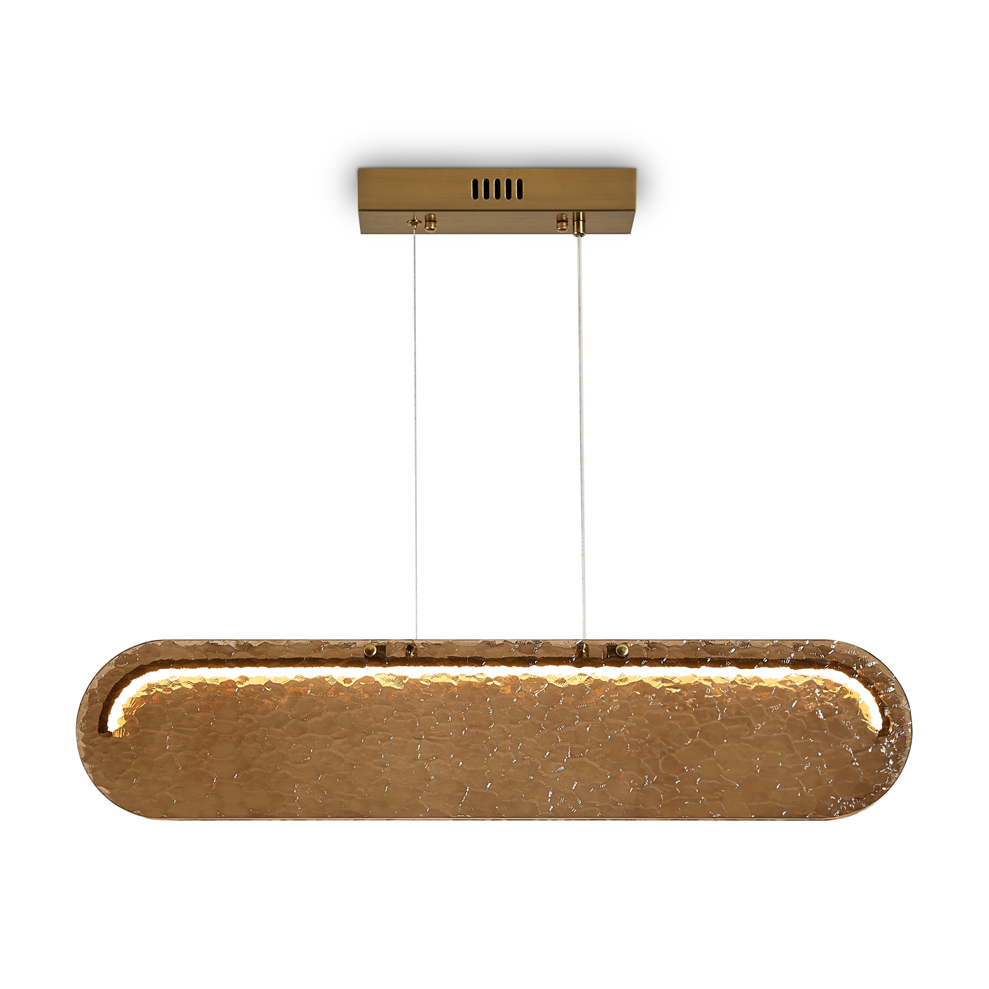 Стеклянные подвесные светильники Lunar с рельефным стеклом в двух цветовых вариантах: коньячном, белом матовым и прозрачным. Две формы плафонов: горизонтальный вытянутый и круглый, напоминающий очертания луны. Арматура — металл латунного цвета. Источник света - LED 3000 K. Дизайн сочетает современные формы с традиционными материалами, создавая эффектное освещение. Рельефное стекло добавляет интересную игру света и тени.