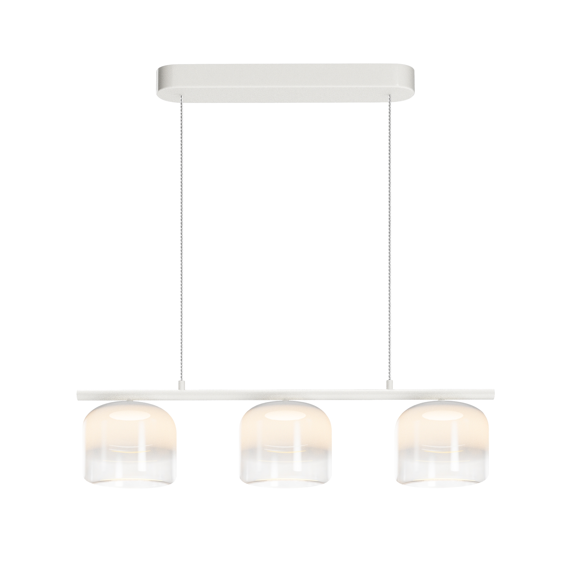 Материал арматуры и плафонов — литое стекло, цвет — градиентный черный, золотой и белый. Фактура поверхностей гладкая. Источник света: LED. Цветовая температура светильника 3000К, угол рассеивания света 120°. На проводе расположен тач-сенсор, при длительном нажатии световой поток меняет свою мощность (диммируется). Отражаясь от стекла, свет стремится вниз, создавая визуальный эффект парения плафона в воздухе.