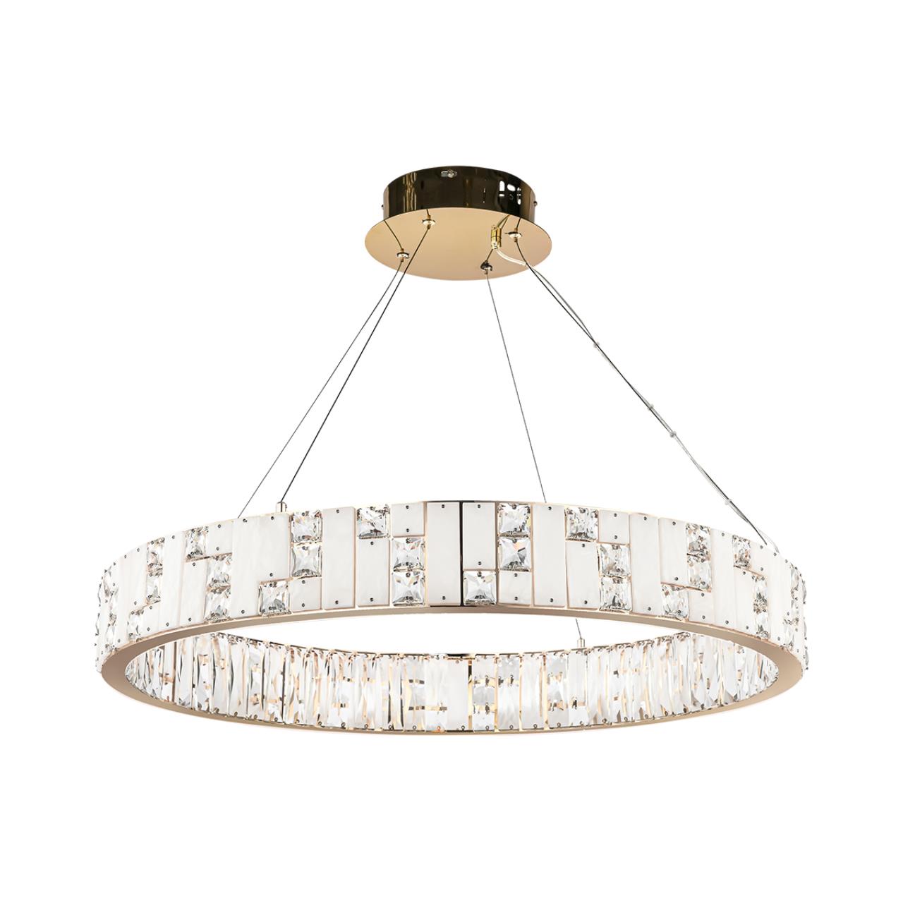 Изумительная модель 5072/100L от итальянского производителя ODEON LIGHT относится к коллекции -CROSSA,материал светильника металл золотого цвета , материал плафона алебастра и хрусталя прозрачного цвета , светодиодный элемент встроен в светильник. цветовая температура светильника 3700К и мощность светильника составляет 100W что позволяет осветить помещение площадью 27 кв.м. Светильник подходит для натяжного потолка и высота светильника регулируется. Данную модель можно купить в интернет магазине 220svet.ru