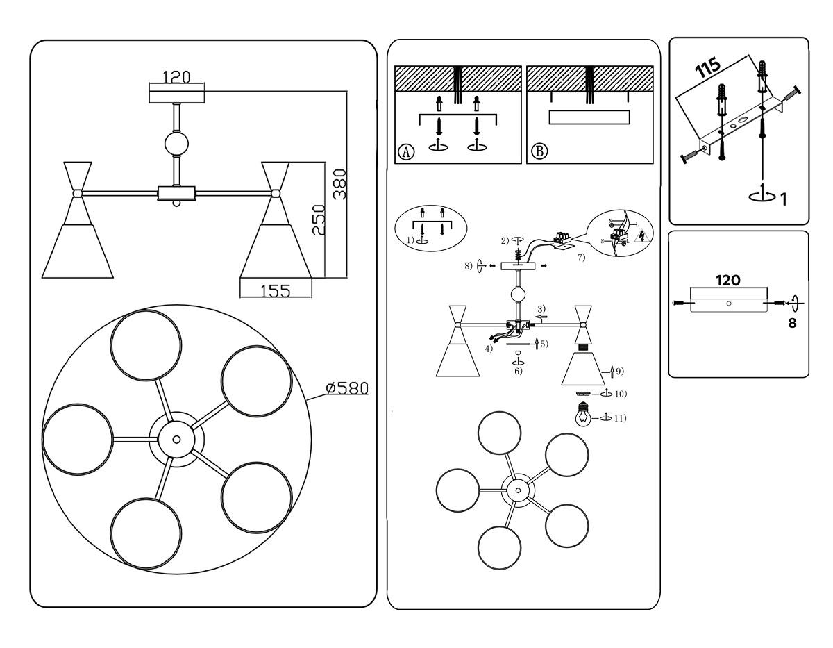 - Количество ламп: 5 шт