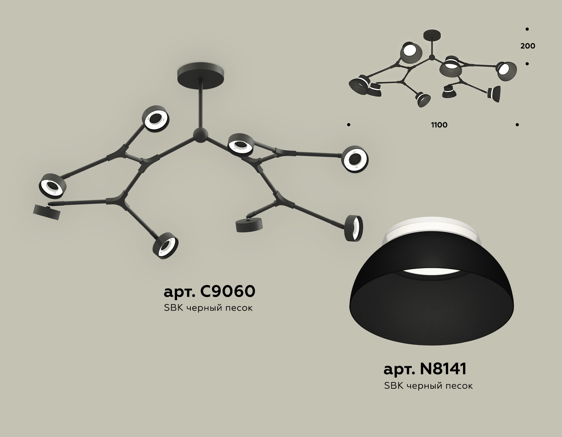 - Цвет плафонов: Черный