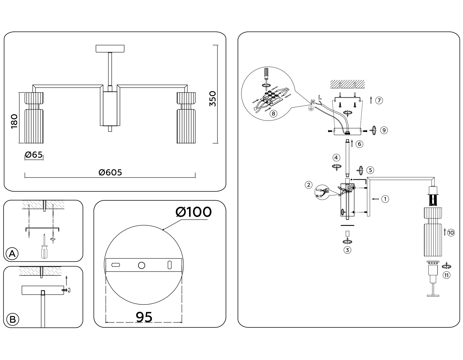 - Направление плафонов: Плафон вниз