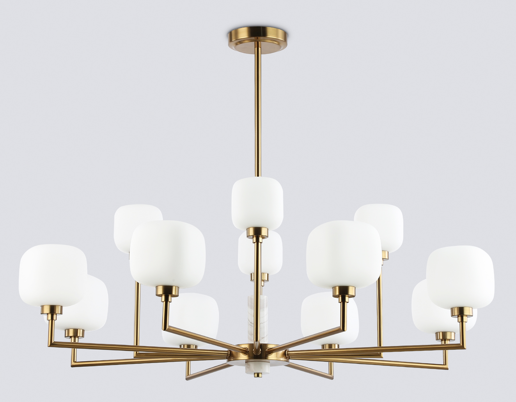 Люстра на штанге с мрамором из коллекции HIGH LIGHT. Модель LH53019 представлена в стиле неоклассика. Люстра выполнена из плафонов белого матового стекла, металлического каркаса цвета латунь и декорирована элементами из мрамора. Для данной модели подойдут лампы с цоколем G9. Люстра будет прекрасным дополнением в любом помещении.