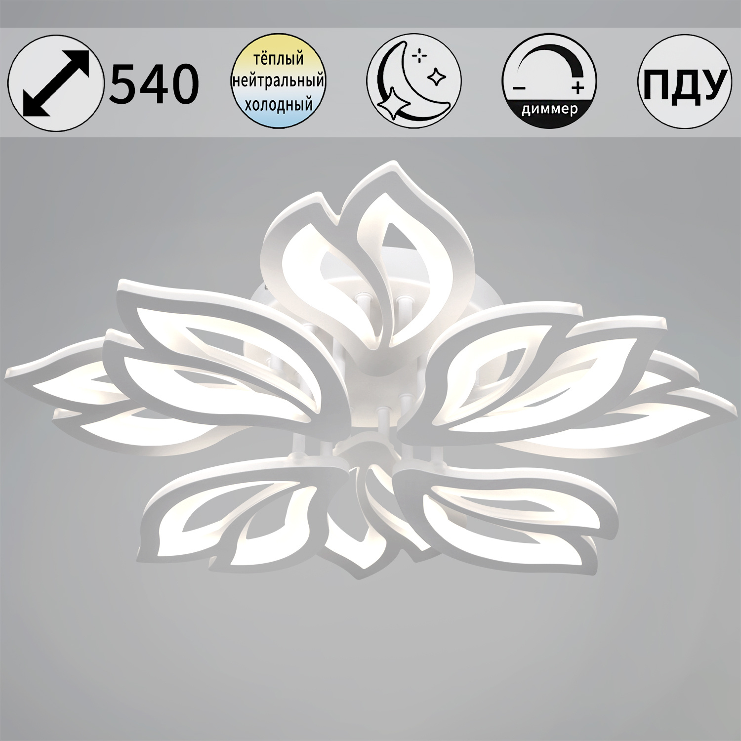 - Технические особенности: С пультом ДУ, С диммером