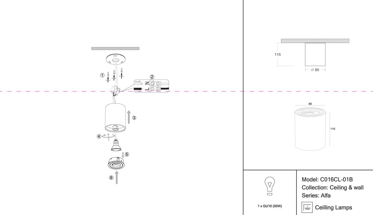 - Направление плафонов: Плафон вниз