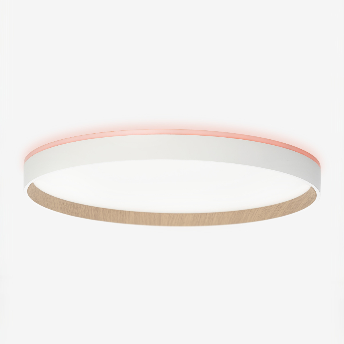 Настенно-потолочный светодиодный светильник Citilux ETALON CL750400R выполнен в современном скандинавском стиле. Корпус изготовлен из белого ударопрочного полимера с декоративным внутренним ободом под дерево (бук). Рассеиватель матовый из оптического полимера. Модель оснащена двумя светодиодными модулями – основного света и красочной потолочной RGB подсветки.