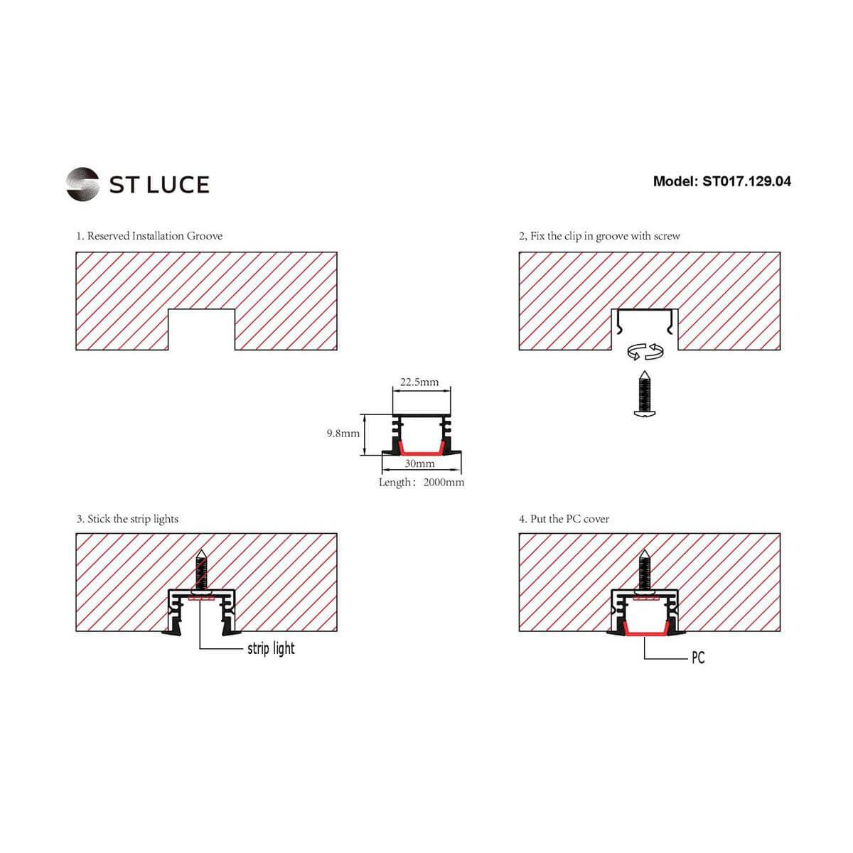 Профиль встраиваемый с рассеивателем ST-Luce ST017. 129. 04 в Белгороде