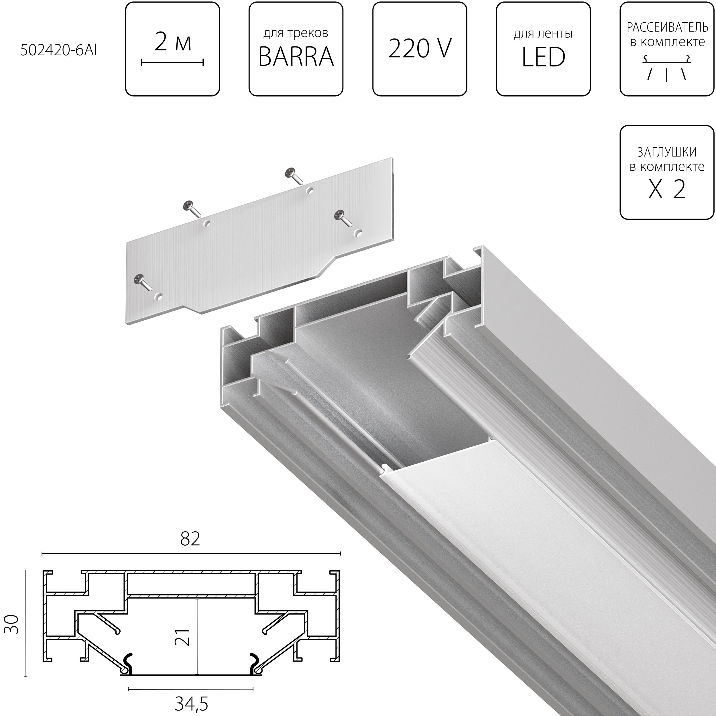 Профиль встраиваемый в натяжной потолок под LED ленту Lightstar Barra Base 502420-6AI в Белгороде