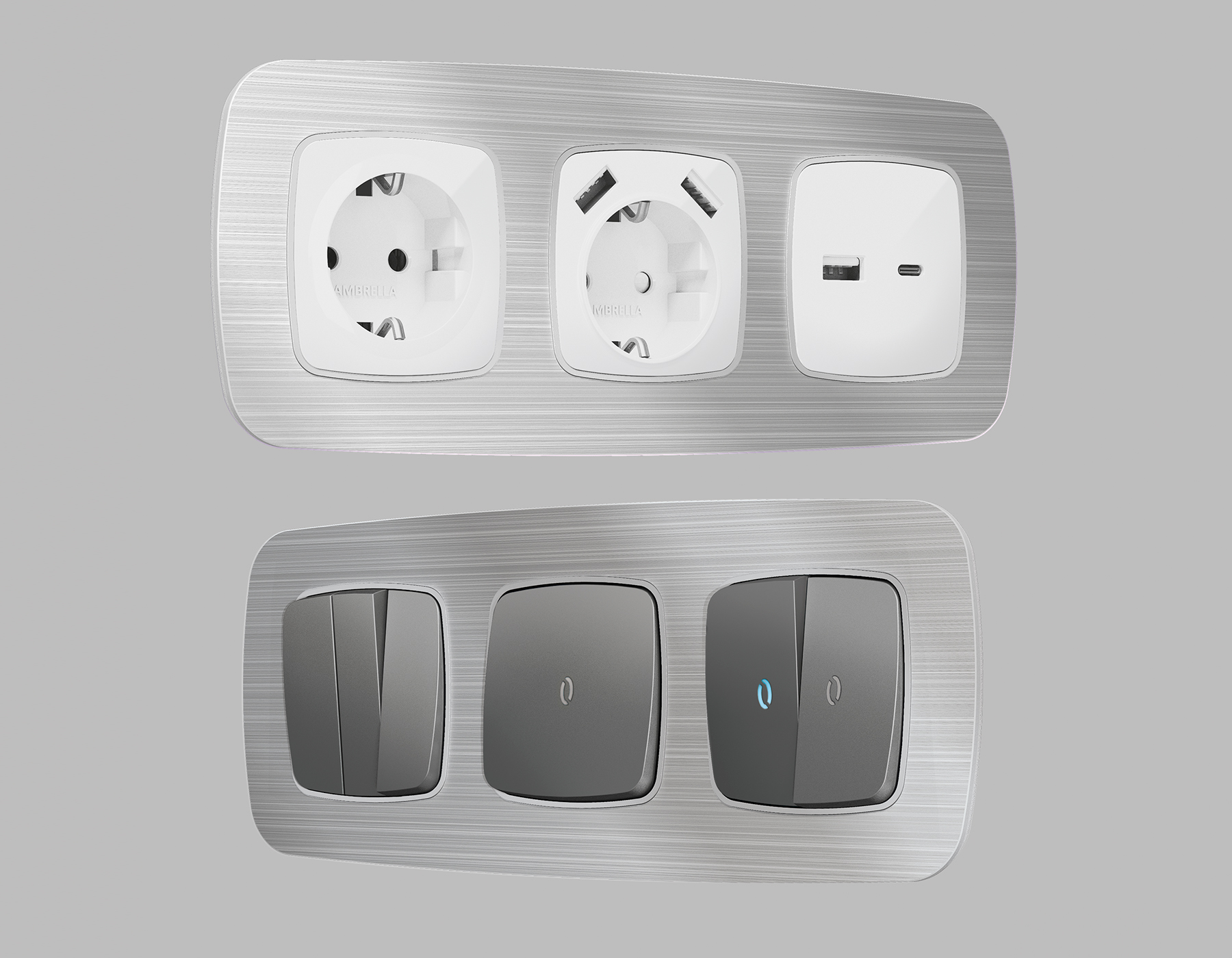 Многогранный ассортимент Ambrella Volt включает в себя механизмы, лицевые панели и рамки, а также комплекты, доступные в различных цветовых решениях. Продукция представлена в модульном исполнении, что позволяет гибко настраивать внешнийвид и функциональность. Вам будет легко заменить лицевую панель, рамку или механизм, найдя идеальное сочетание цветов.