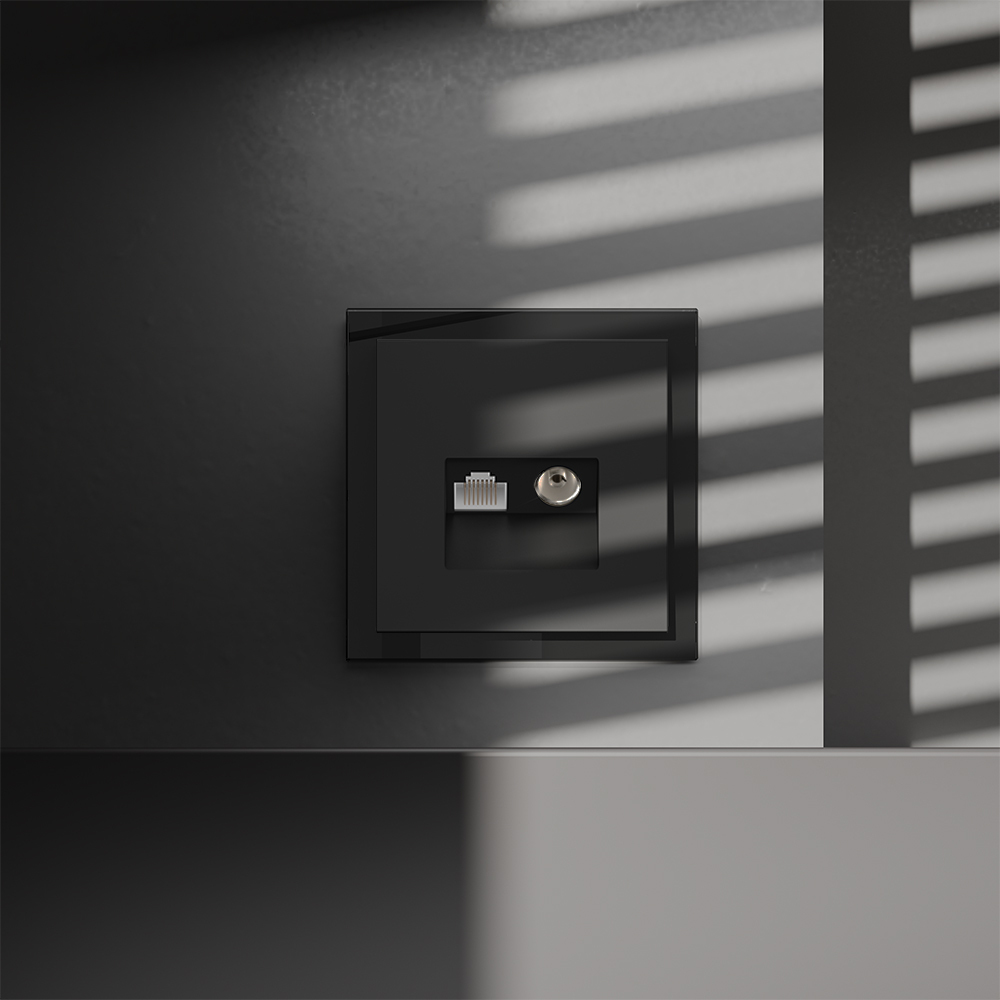 Купить "Розетка телевизионная встраиваемая TV+RJ45 кат. 6 Voltum S70 VLS060708 (черный матовый)"