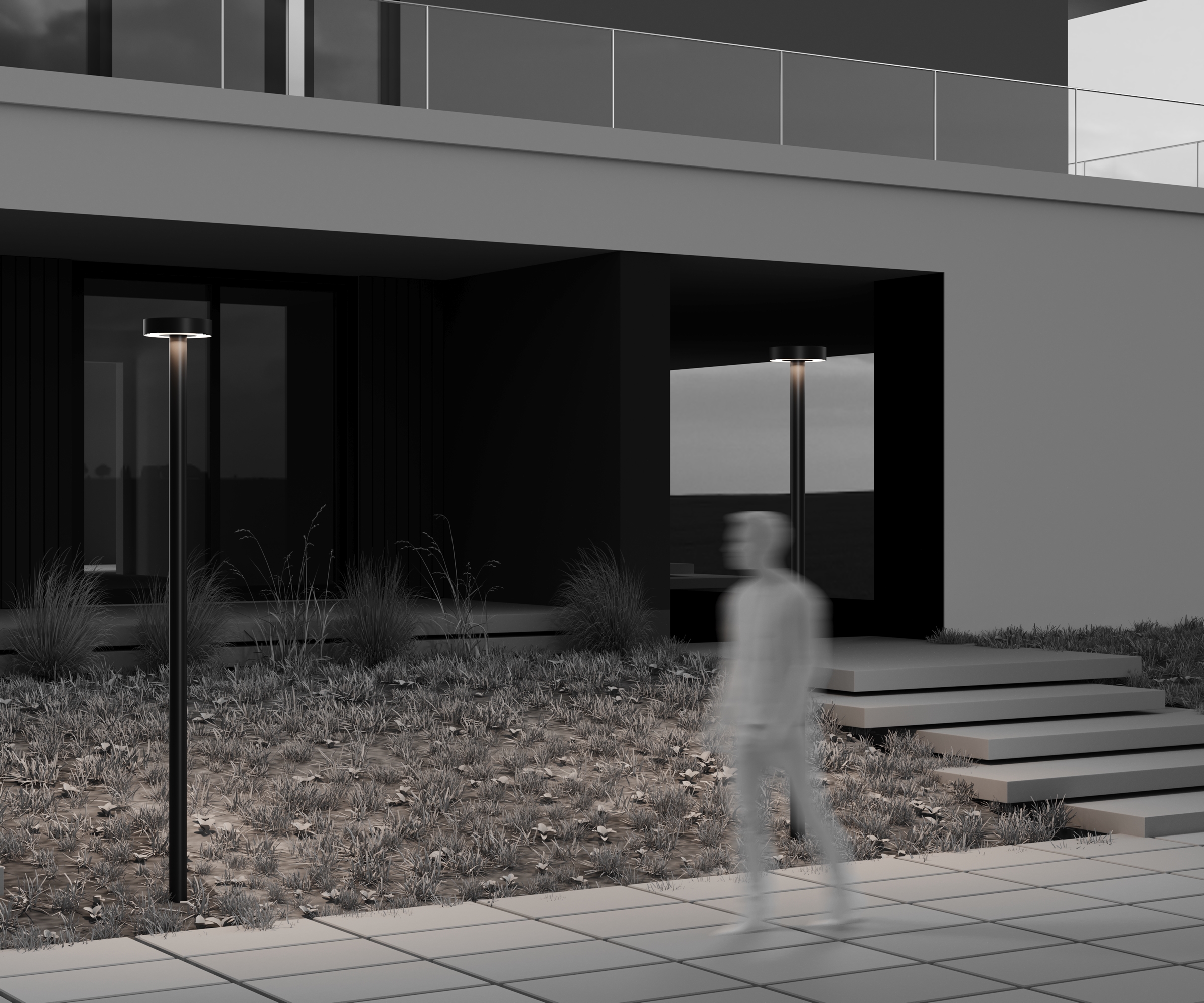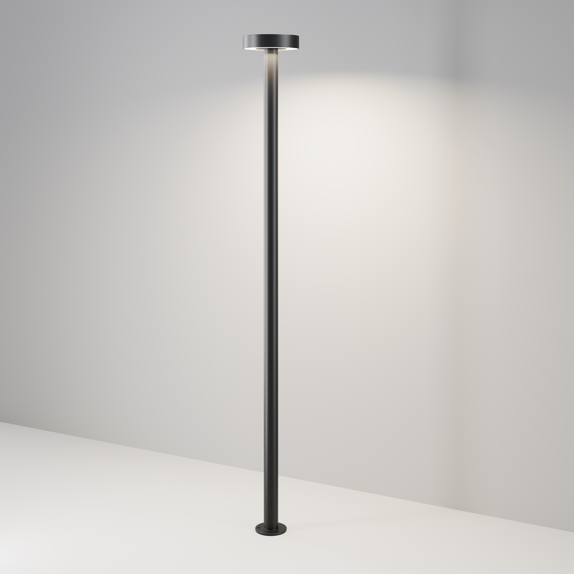 Серия Nail из алюминия черного цвета, плафон — из пластика. LED-источник света, мощность 30 Вт, цветовая температура 3000К, угол рассеивания 85°, степень защиты IP65. Установка на заранее подготовленную поверхность с анкерными креплениями. Лаконичный дизайн предназначен для освещения садовых дорожек и парковых зон.