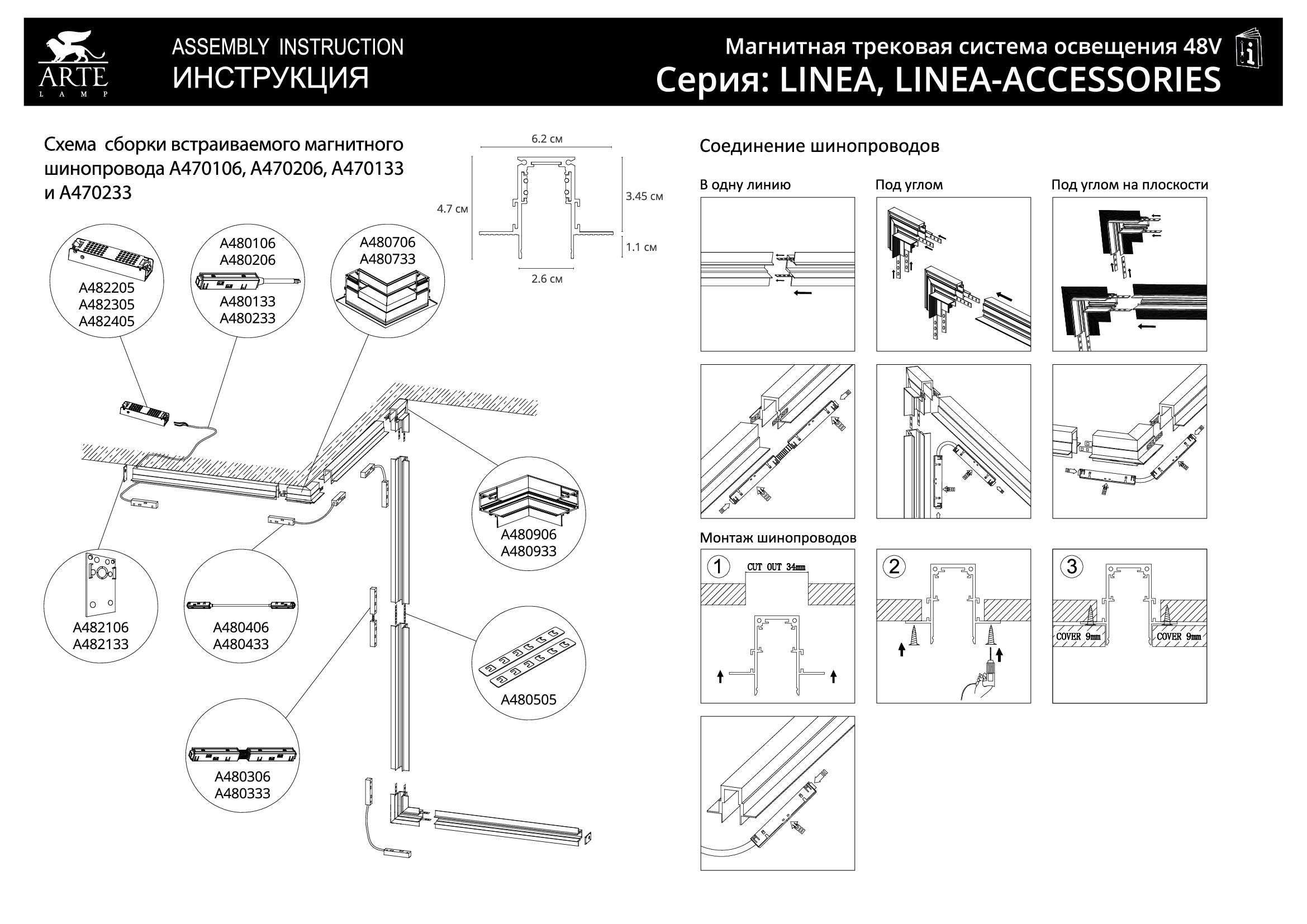 Купить "Шинопровод магнитный встраиваемый Arte Lamp Linea-Accessories A470133"