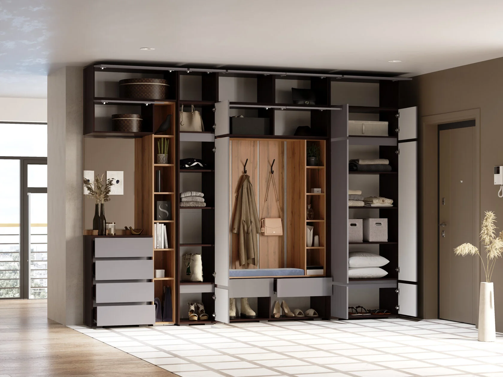 Шкаф двухстворчатый Woodville Роут венге / графит софт 593729 в Белгороде