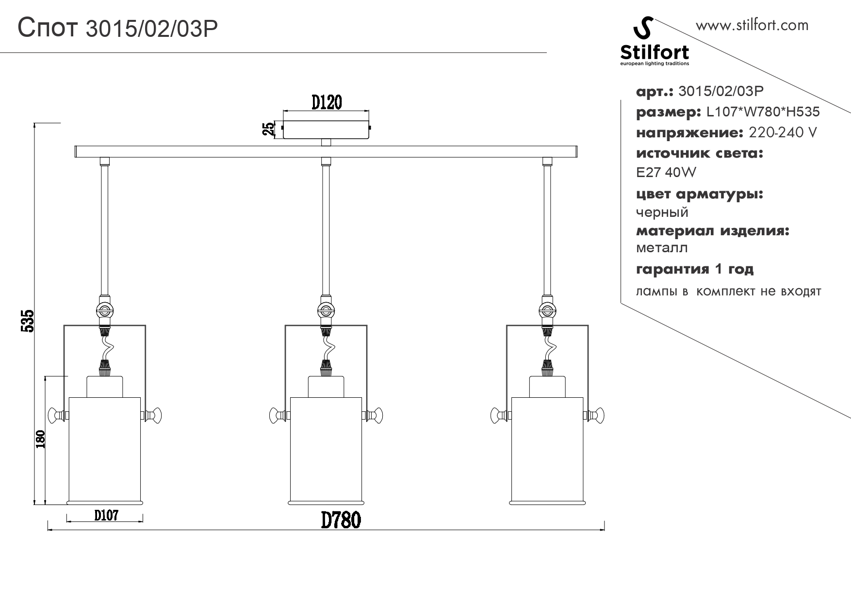 - Количество ламп: 3 шт