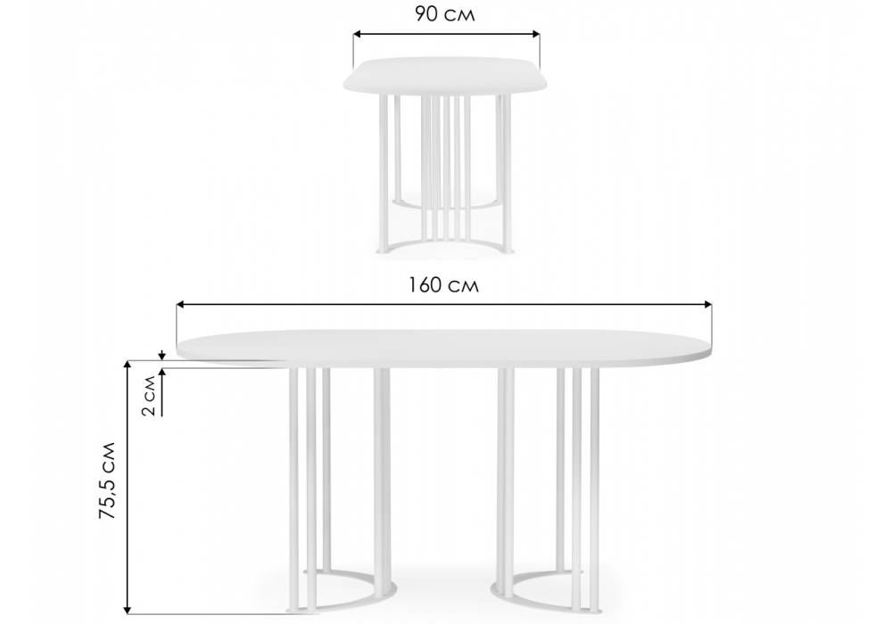 Материал каркаса - металл; Материал столешницы - ЛДСП; Ширина - 90; Высота - 75,5; Длина - 160;