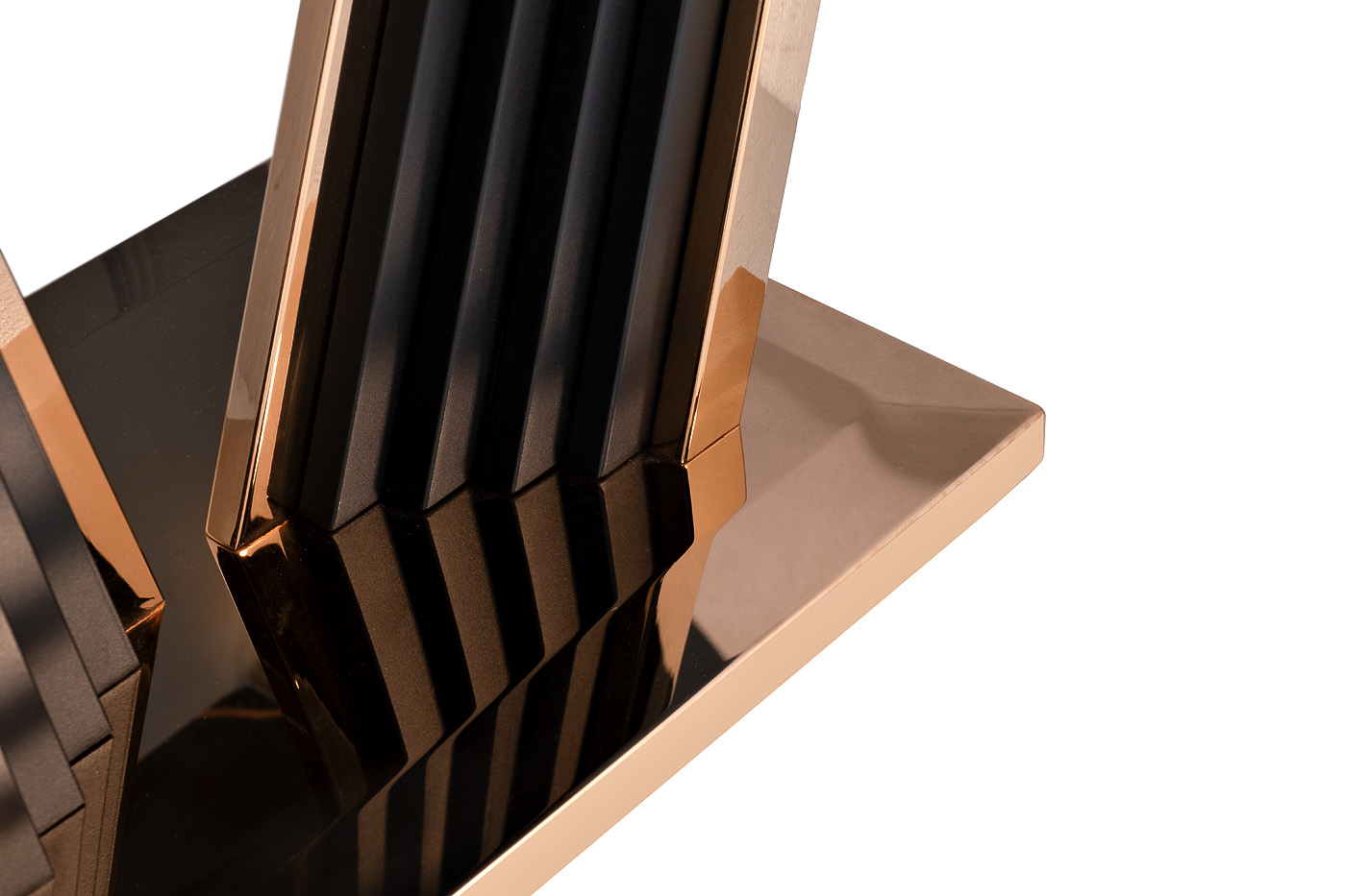 Кофейный стол, задача которого украшать, вдохновлять и радовать глаз. Не ждите от него универсальности и простоты – это не про данную модель. Этот дизайнерский стол воплощает в себе высокий стиль и роскошную элегантность. Аристократичный черный цвет столешницы и блеск металла красноречиво подчеркивают достоинство этой мебели. Столик эффектно будет смотреться в гостиной, оформленной в стиле ар-деко или неоклассика.