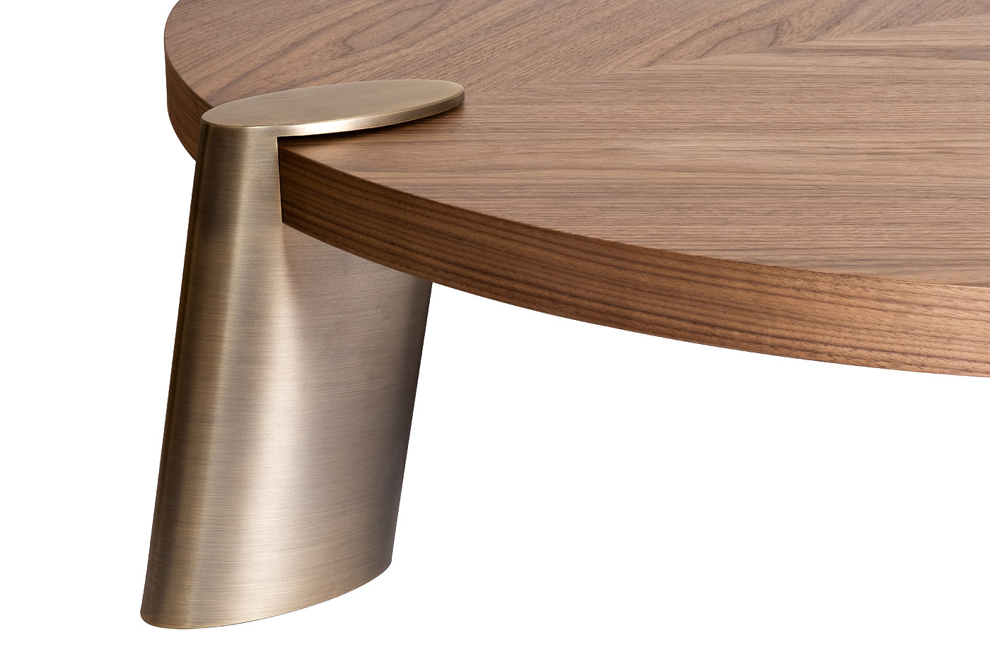 Необыкновенно стильный журнальный стол KONG от бельгийского дизайнера Тома Де Вульфа стал хитом продаж в Европе. В процессе его создания автора вдохновляла отделка суперсовременных автомобилей люксовых марок. Три массивные стальные ножки цвета латуни имеют устойчивую обтекаемую форму и благородный шелковистый блеск, достигаемый шлифовкой металла вручную. Шпонированная столешница из светлого ореха выглядит дорого и изящно. Сдержанные линии, скругленные формы, лаконизм в деталях сочетаются с высоким качеством материалов и отделки. Необычные пропорции притягивают взгляд и без слов говорят о том, что этот предмет мебели - авторская работа известного дизайнера. Стол впишется в современный интерьер кабинета или гостиной, станет роскошным дополнением к стильному дивану или креслам.