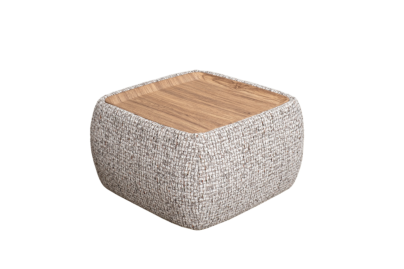 Cтолик прикроватный мягкий серии RYNA. В стандартном исполнении столик выполнен в ткани из коллекции Garda Decor- шенилл Seppia SER. В состав комплекта прикроватного столика входит подушка с бурлетом 41*41см- 1шт выполнена в основной ткани столика. Габариты столика: ширина-49см, глубина-49см, высота- 27см(без учета подушки)/ 32см(с учетом подушки).Габарит столешницы- 39*39см. Столешница к столику обтянута пленкой ПВХ.