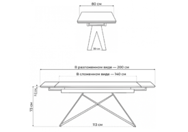 Керамический стол раскладной Woodville Вилсон 140(200)х80 серый мрамор larka grey / черный 625959