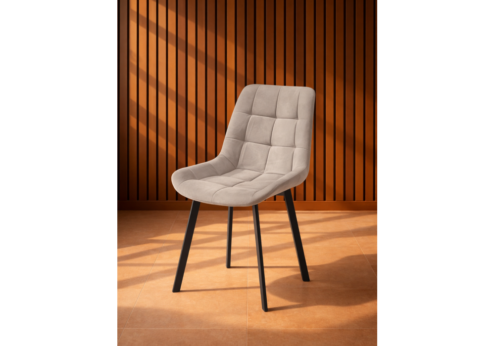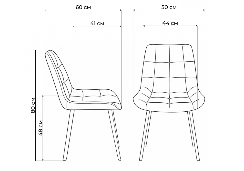 Материал каркаса - металл; Материал сиденья - велюр; Материал обивки - велюр; Цвет ножек - черный; Ширина - 50; Глубина - 60; Высота - 80; Ширина сиденья - 44; Глубина сиденья - 41; Высота сиденья - 48;