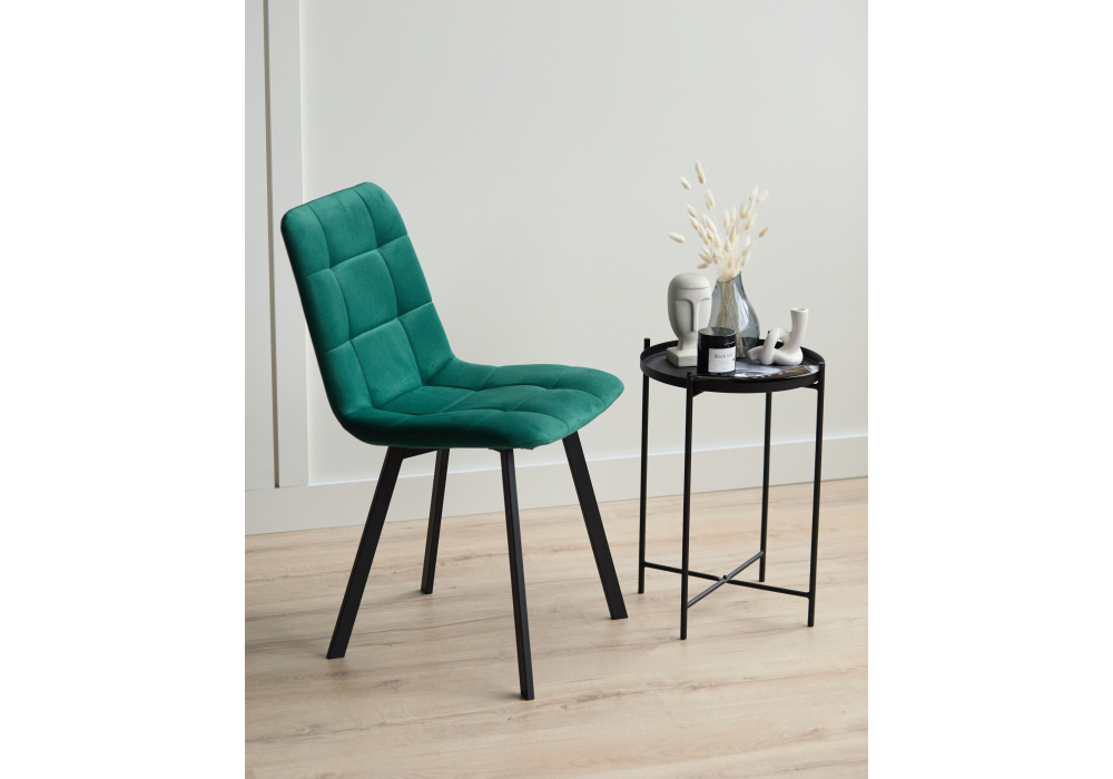 Материал каркаса - металл; Материал сиденья - велюр; Материал обивки - велюр; Цвет ножек - черный; Ширина - 43,5; Глубина - 50; Высота - 87,5; Ширина сиденья - 40; Глубина сиденья - 37,5; Высота сиденья - 49;