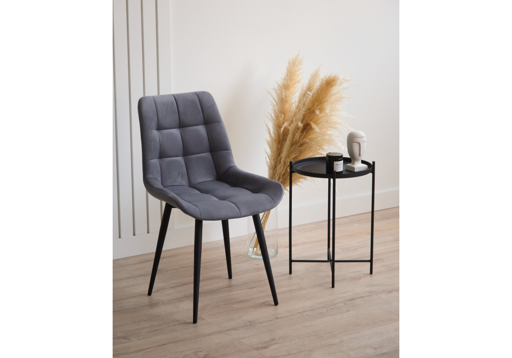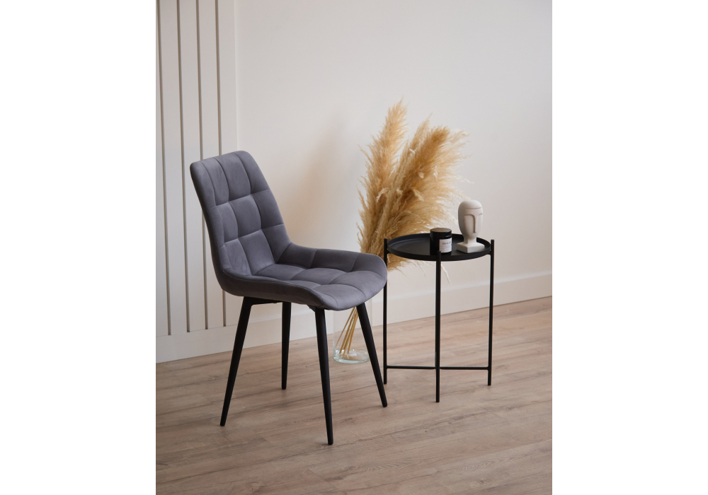 Материал каркаса - металл; Материал сиденья - велюр; Материал обивки - велюр; Цвет ножек - черный; Ширина - 50; Глубина - 60; Высота - 80; Ширина сиденья - 44; Глубина сиденья - 41; Высота сиденья - 48;