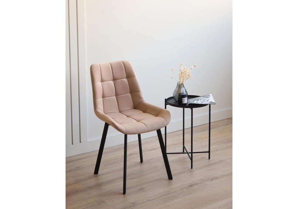 Материал каркаса - металл; Материал сиденья - велюр; Материал обивки - велюр; Цвет ножек - черный; Ширина - 50; Глубина - 60; Высота - 80; Ширина сиденья - 44; Глубина сиденья - 41; Высота сиденья - 48;