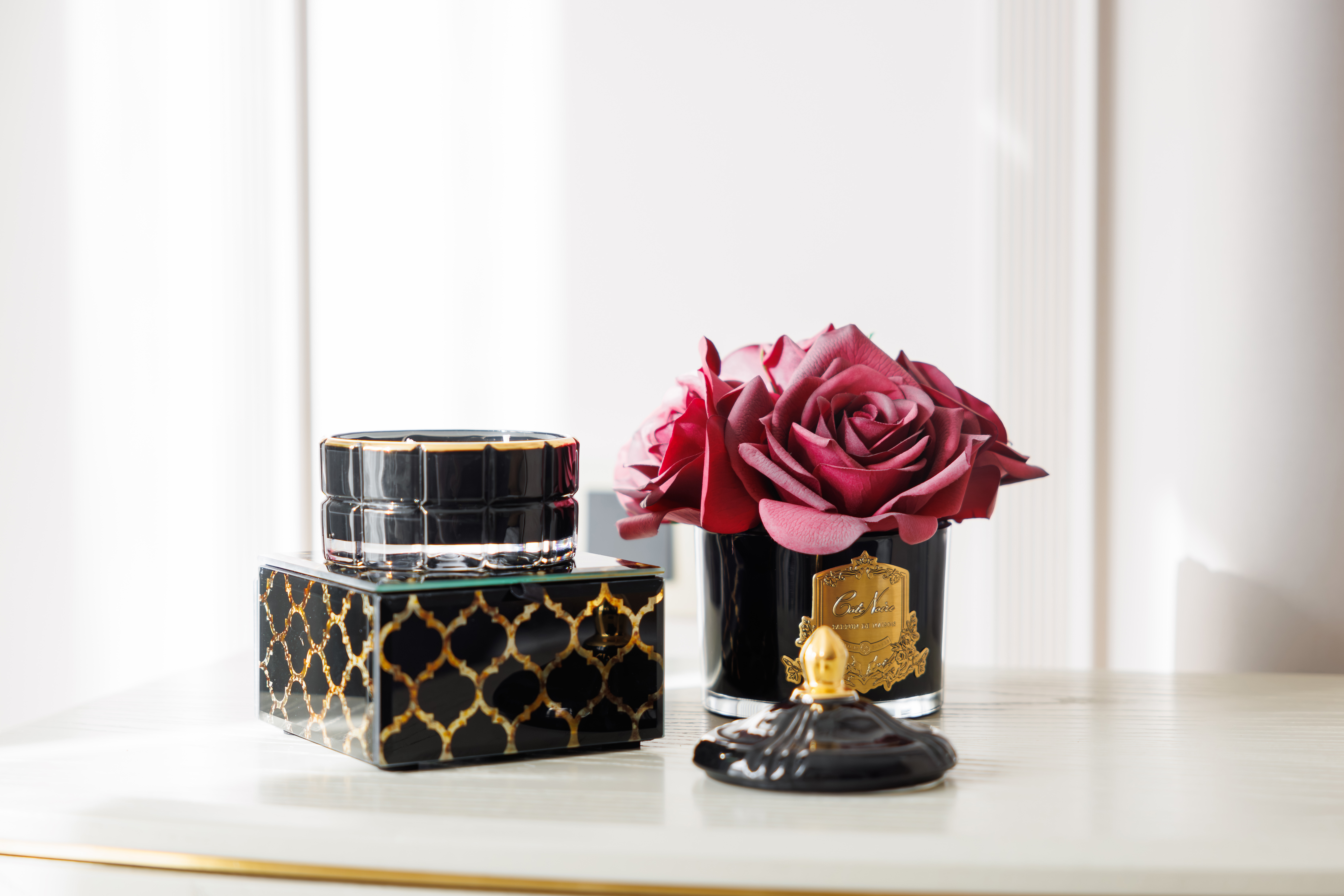 Роскошные ароматы для дома в стиле ар-деко: ароматическая свеча в стеклянной вазе с крышкой и золотой отделкой. Верхние ноты черного чая, средние ноты кедра и свежескошенной травы, базовые ноты восточной лилии наполнят атмосферу благоуханием восхитительно...