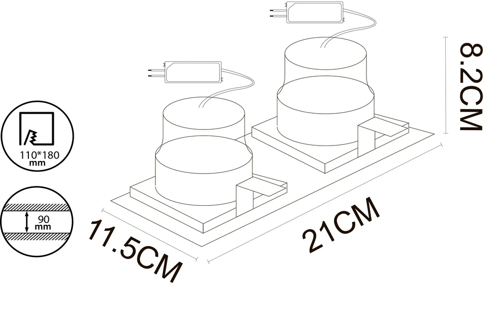 - Диаметр врезного отверстия: 110x180 мм