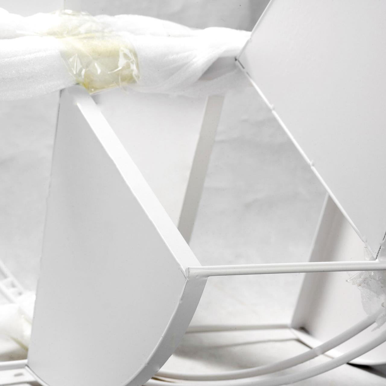 Оригинальная модель белого цвета изготовлена из металла. Плафон - цилиндрический, выполнен из ткани. Стиль торшера - кантри,  он отлично подойдёт для гостиной,  создаст уют и камерность, может служить, как для декоративного освещения, так и для функционального освещения места для чтения книги, например.