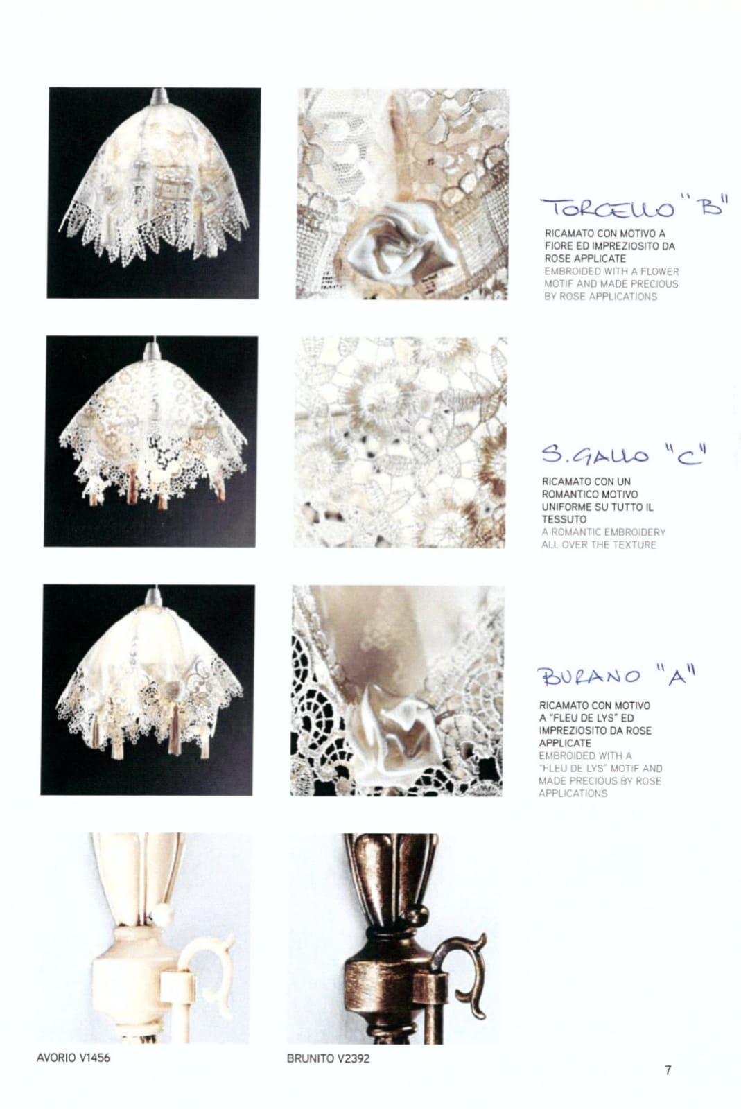В коллекции Burano проработано все до мелочей: и нежное кружево абажуров в нескольких цветочных мотивах, и основания, выкованные и отшлифованные вручную.