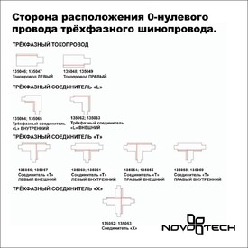 Соединитель T левый внутренний с токопроводом для трёхфазного шинопровода Novotech 135060