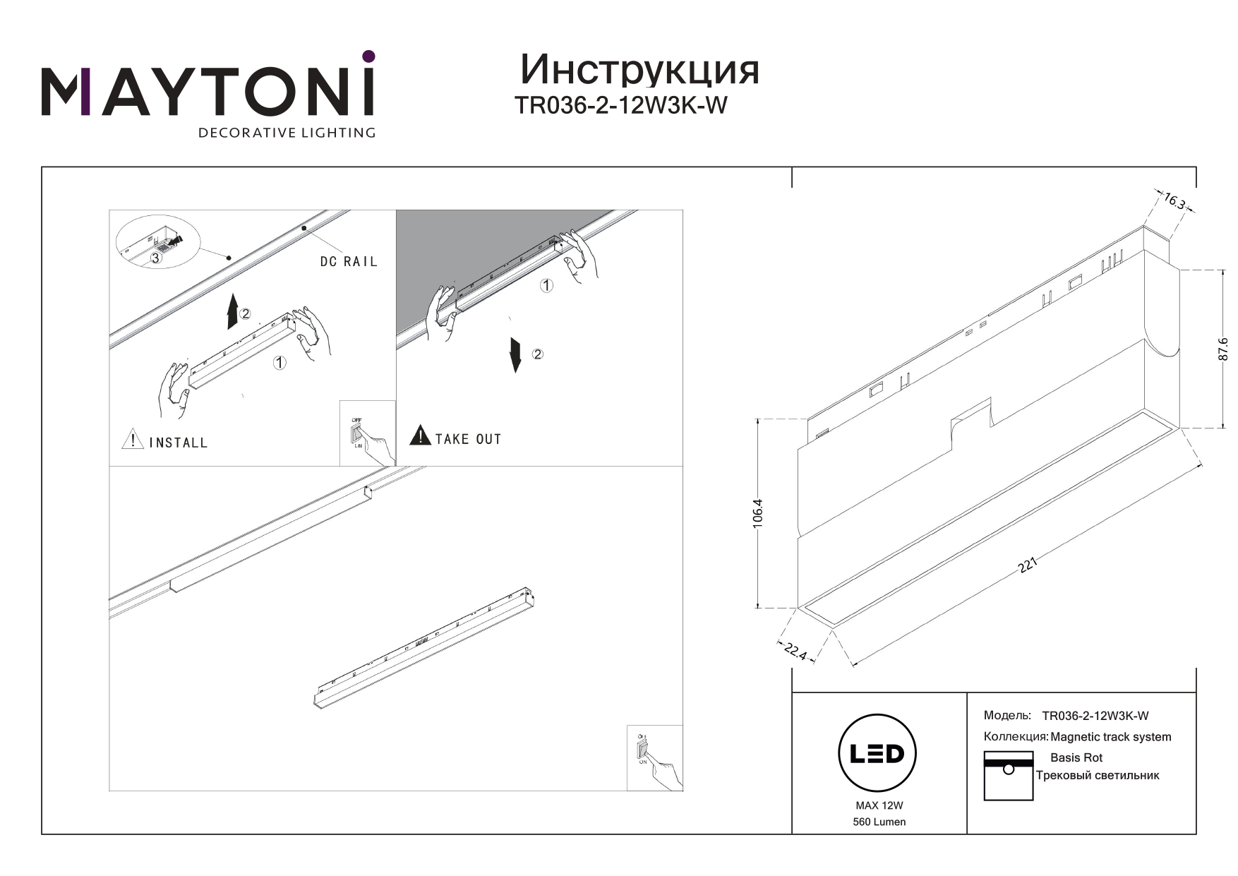 Все характеристики TR036-2-12W3K-W