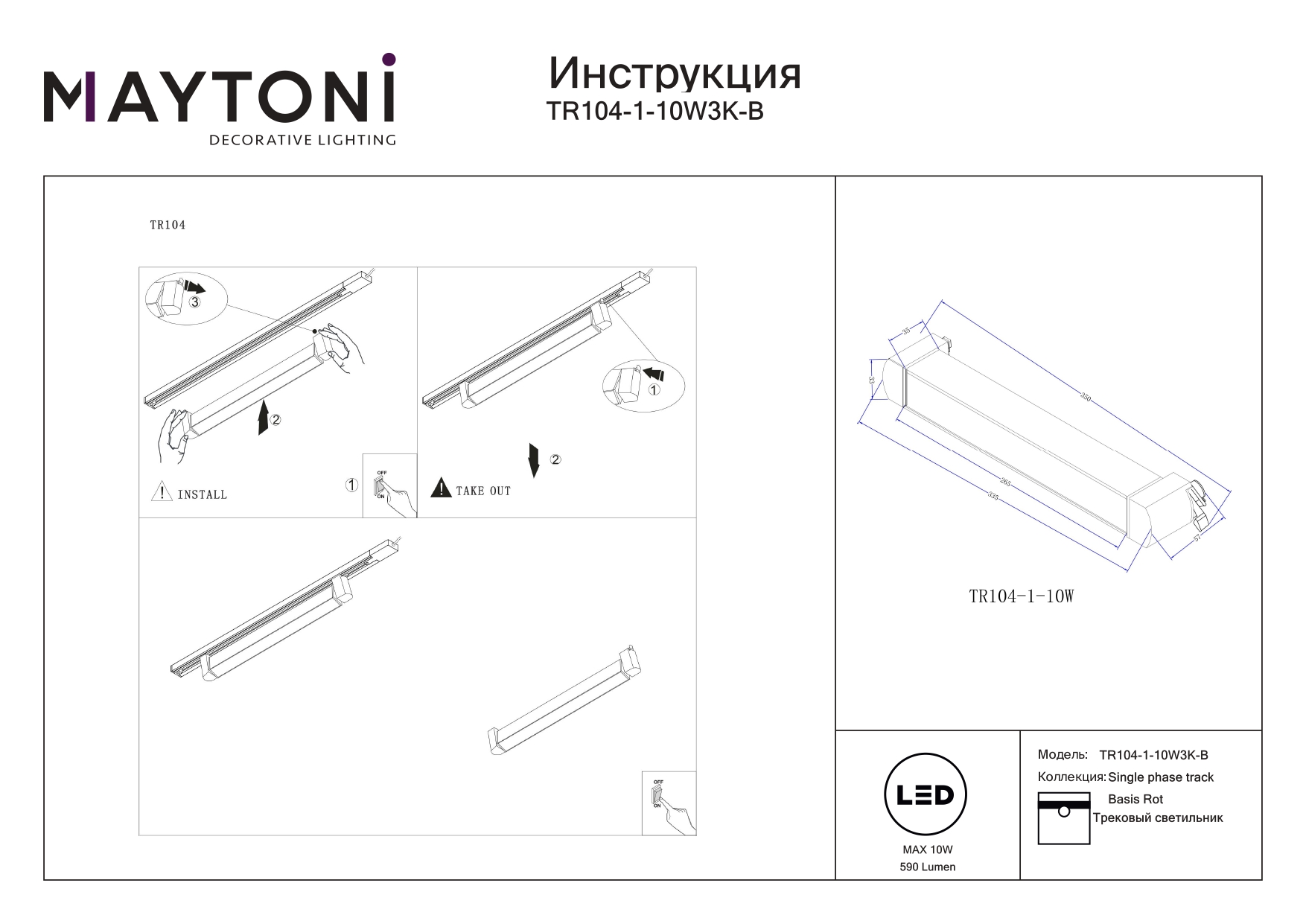 Однофазный трековый светильник Maytoni Basis Rot TR104-1-10W3K-B в Белгороде