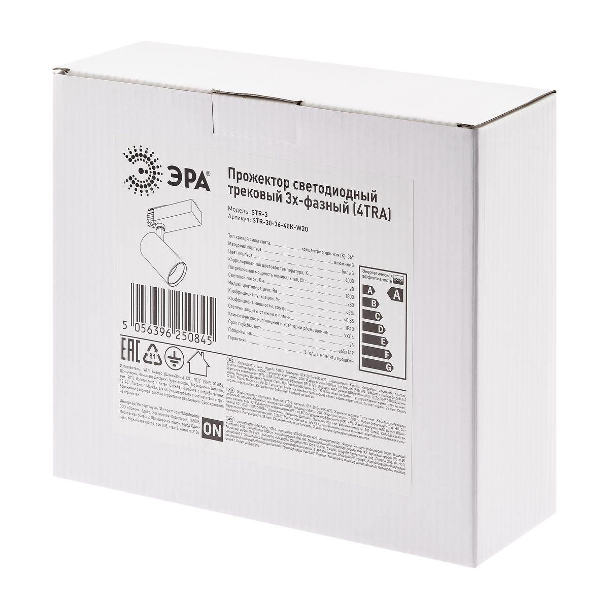 Трековый светодиодный светильник ЭРА SТR-30-36-40K-W20 Б0049752 в Белгороде