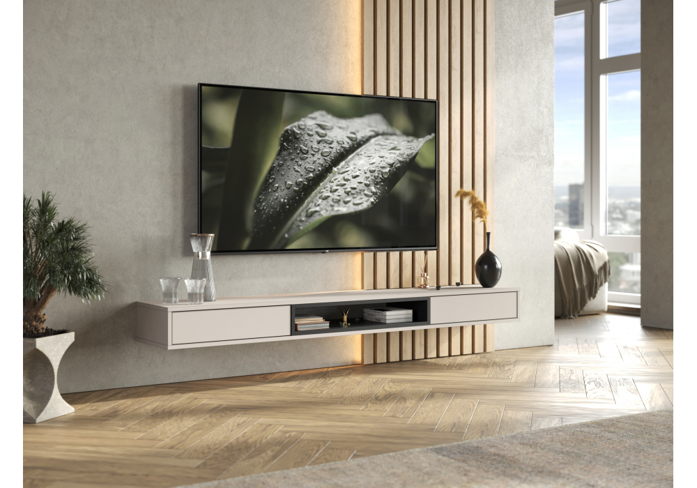 Купить "ТВ-тумба Woodville Делора 1,8м кашемир / черный 674719"