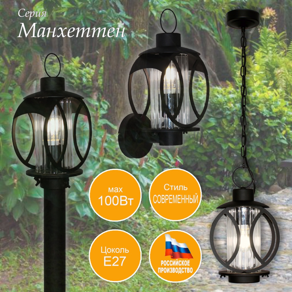 Уличный настенный светильник из коллекции «Манхеттен» IP54- это прекрасное сочетание дизайна и функциональности. Он воплотил в себе изысканный стиль, высокое качество изготовления. обеспечивающее устойчивость к воздействию внешней среды. Светильник оснащен стандартным цоколем Е 27, который позволит использовать сменные лампы различных типов в качестве источника света. Коллекция светильников "Манхеттен" состоит не только из настенного светильника, но также присутствуют подвесной и светильник на столб, что поможет создать целые световые композиции и выделить самую привлекательную часть освещаемой территории и строений в едином стиле. Рассеиватель светильника выполнен из рифленого боросиликатного стекла, и прекрасно рассеивает свет, что не только функционально, но в целом создает уют в экстерьере. Основной цвет изделия, классический черный.