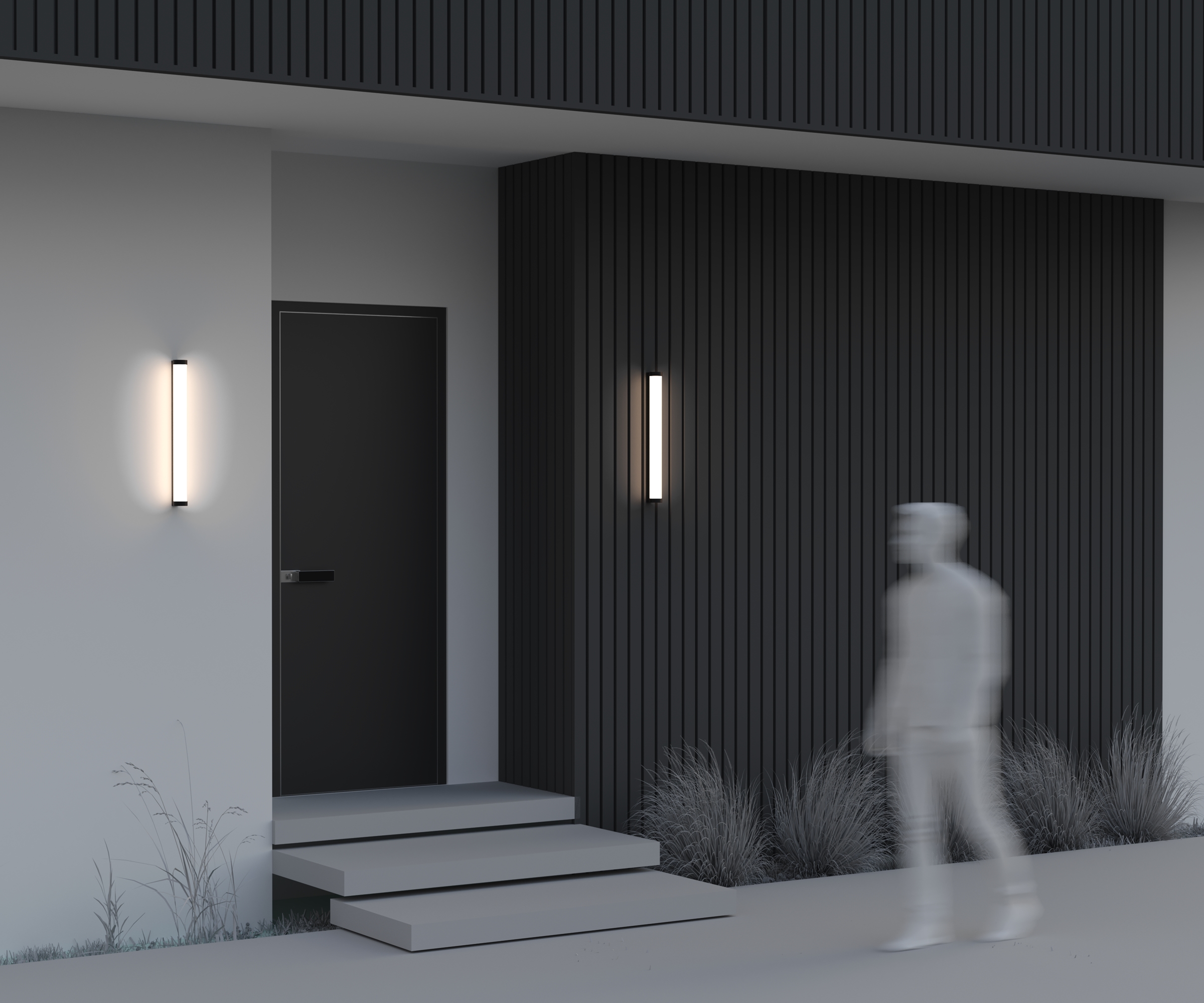 Настенные светильники бра. Корпус — алюминий, цвет — глубокий черный. Вертикальная конструкция с двусторонним световым потоком. LED-технология, теплый свет 3000К. Модели мощностью 12 Вт и 16 Вт. Защита от влаги и пыли — IP54. Подходящее решение для создания атмосферного освещения фасадов и внутренних помещений.