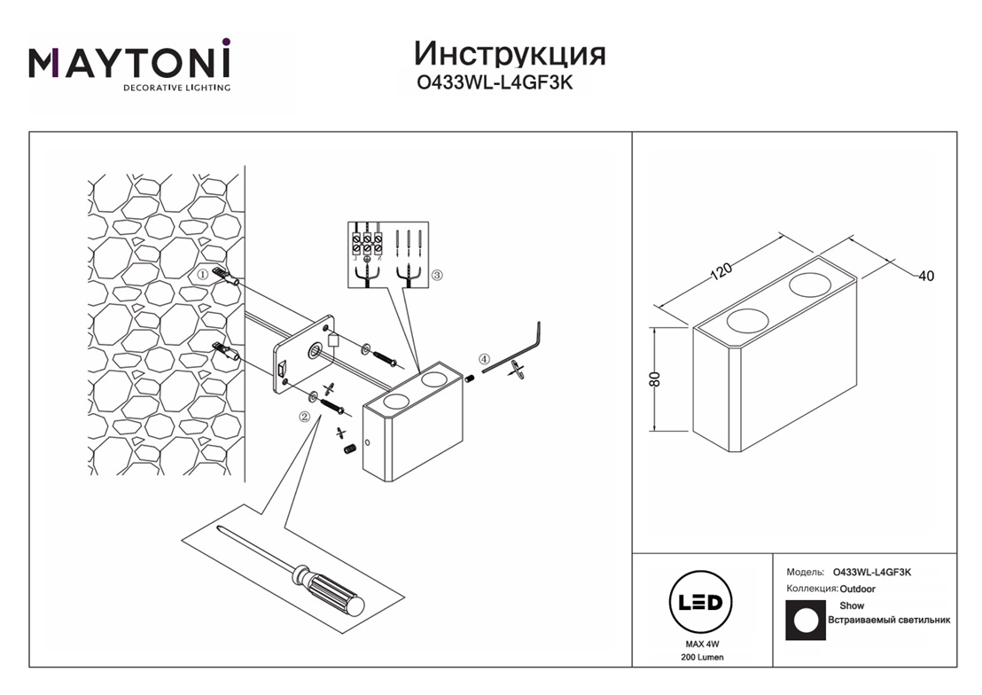 Встроенные светодиоды обеспечивают долговечность и энергоэффективность, что особенно важно для уличных светильников, работающих в различных погодных условиях. Высокое качество сборки и материалов позволяют светильнику выдерживать воздействие влаги, пыли и других неблагоприятных факторов окружающей среды, что гарантирует его надежную работу на долгие годы. Модель Maytoni Show O433WL-L4GF3K отличается не только своей устойчивостью к внешним воздействиям, но и минималистичным дизайном, который легко впишется в любой архитектурный стиль.