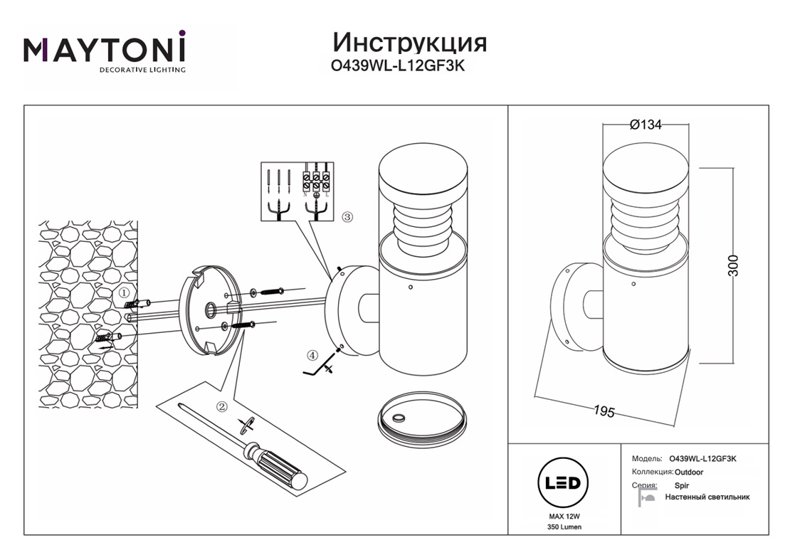 Представляем вашему вниманию уличный настенный светодиодный светильник Maytoni Spir O439WL-L12GF3K — идеальное решение для эффективного и стильного освещения вашего внешнего пространства. Этот светильник сочетает в себе современный дизайн и высокую функциональность, позволяя создать уютную и безопасную атмосферу вокруг вашего дома. Изготовлен из качественных материалов, он устойчив к воздействию погодных условий, что гарантирует долгий срок службы и стабильную работоспособность на протяжении многих лет. Светильник Maytoni Spir обрамлен в элегантный и прочный корпус, который великолепно впишется как в классический, так и в современный экстерьер.