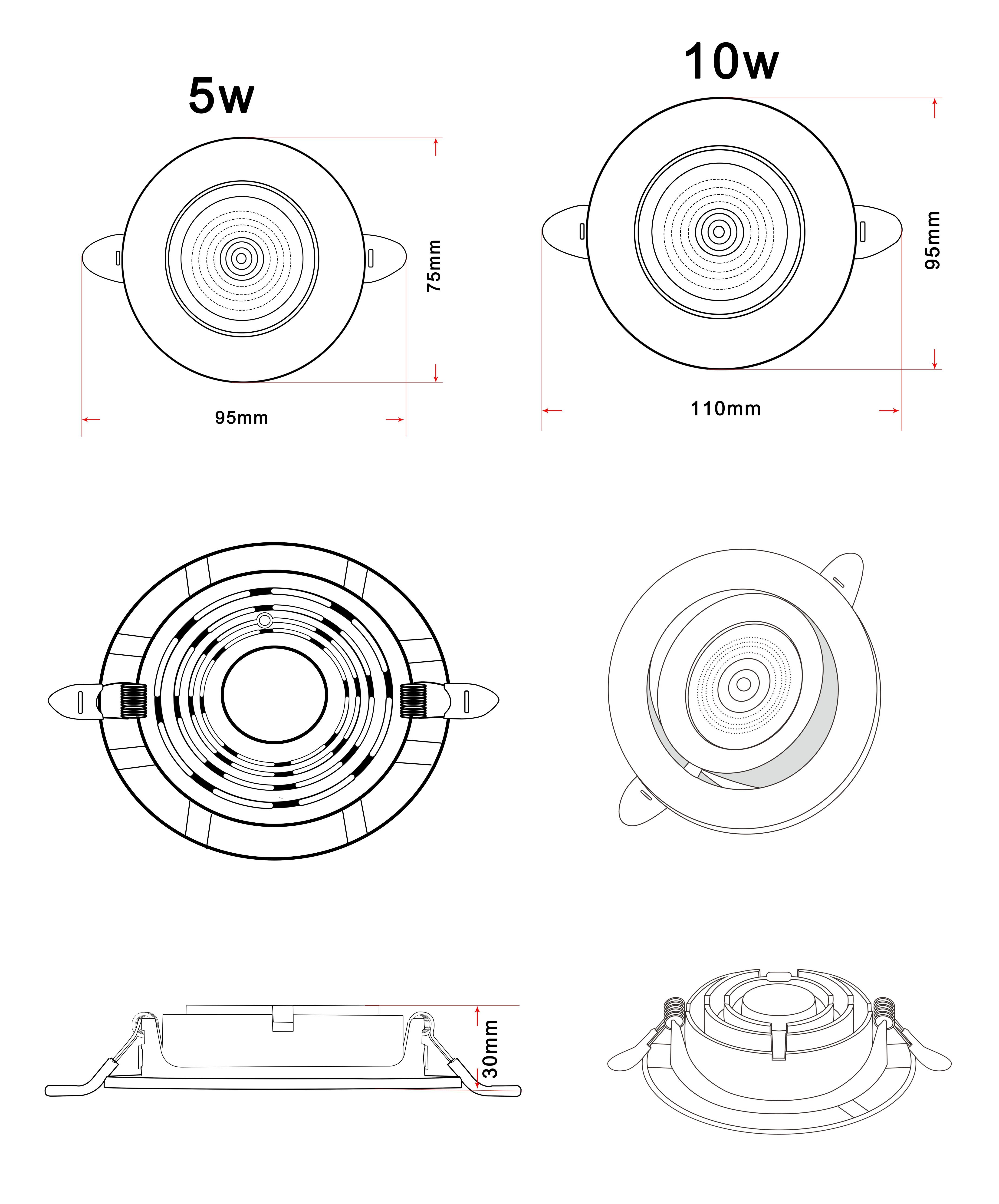 - Диаметр врезного отверстия: 95 мм (9.5 см)
