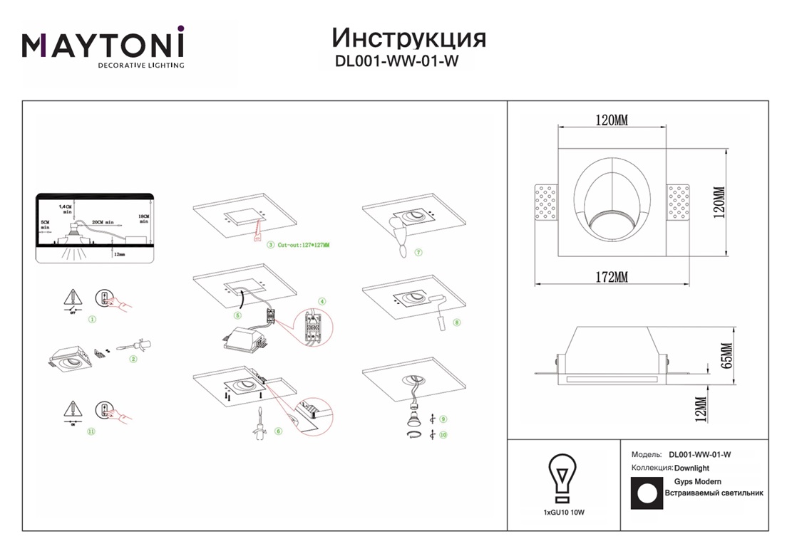 Встраиваемый светильник Maytoni Gyps Modern DL001-WW-01-W — это надёжный и долговечный осветительный прибор, который прослужит вам долгие годы, не теряя своей яркости и качества света. Данную модель всегда можете купить в интернет-магазине 220svet.