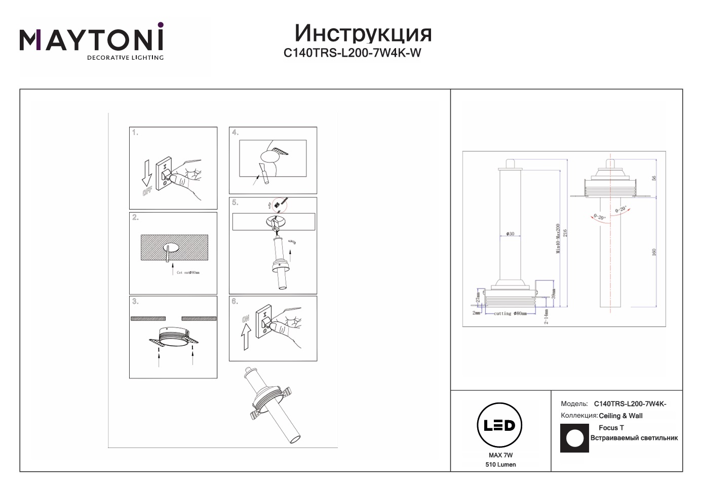 Все характеристики C140TRS-L200-7W4K-W