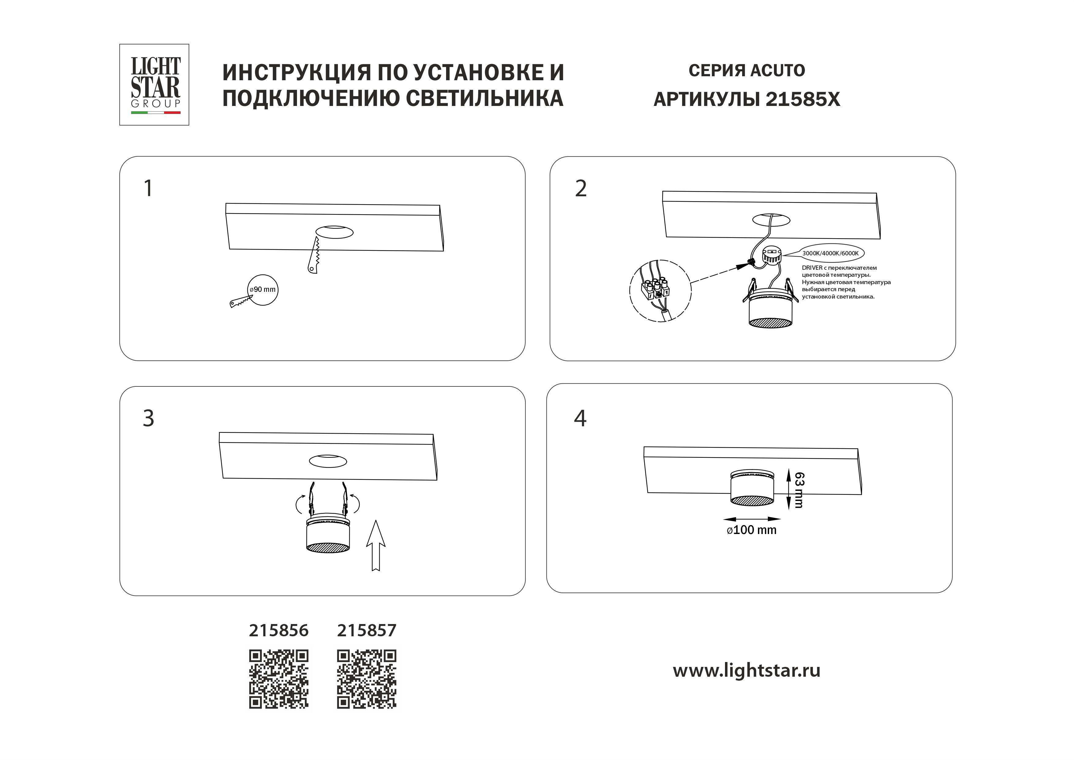 Купить "Встраиваемый светодиодный светильник с переключателем света Lightstar Acuto 215857"