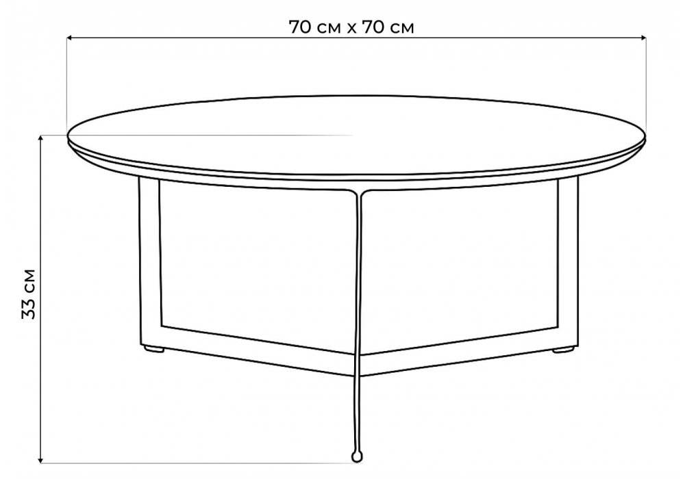 Материал каркаса - металл; Материал столешницы - Стекло; Ширина - 70; Высота - 33; Длина - 70;